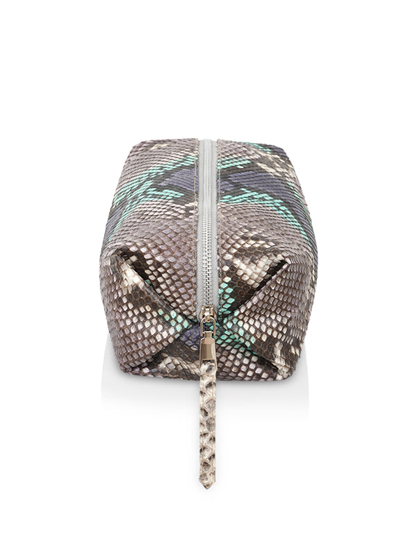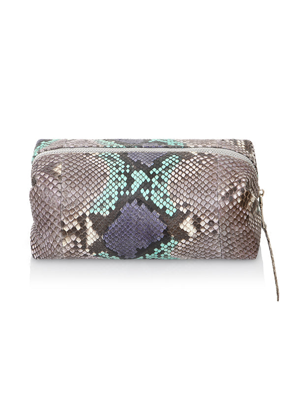 Découvrez la trousse Véronique en python multiviolet, alliant luxe, praticité et durabilité pour une organisation élégante de votre maquillage.