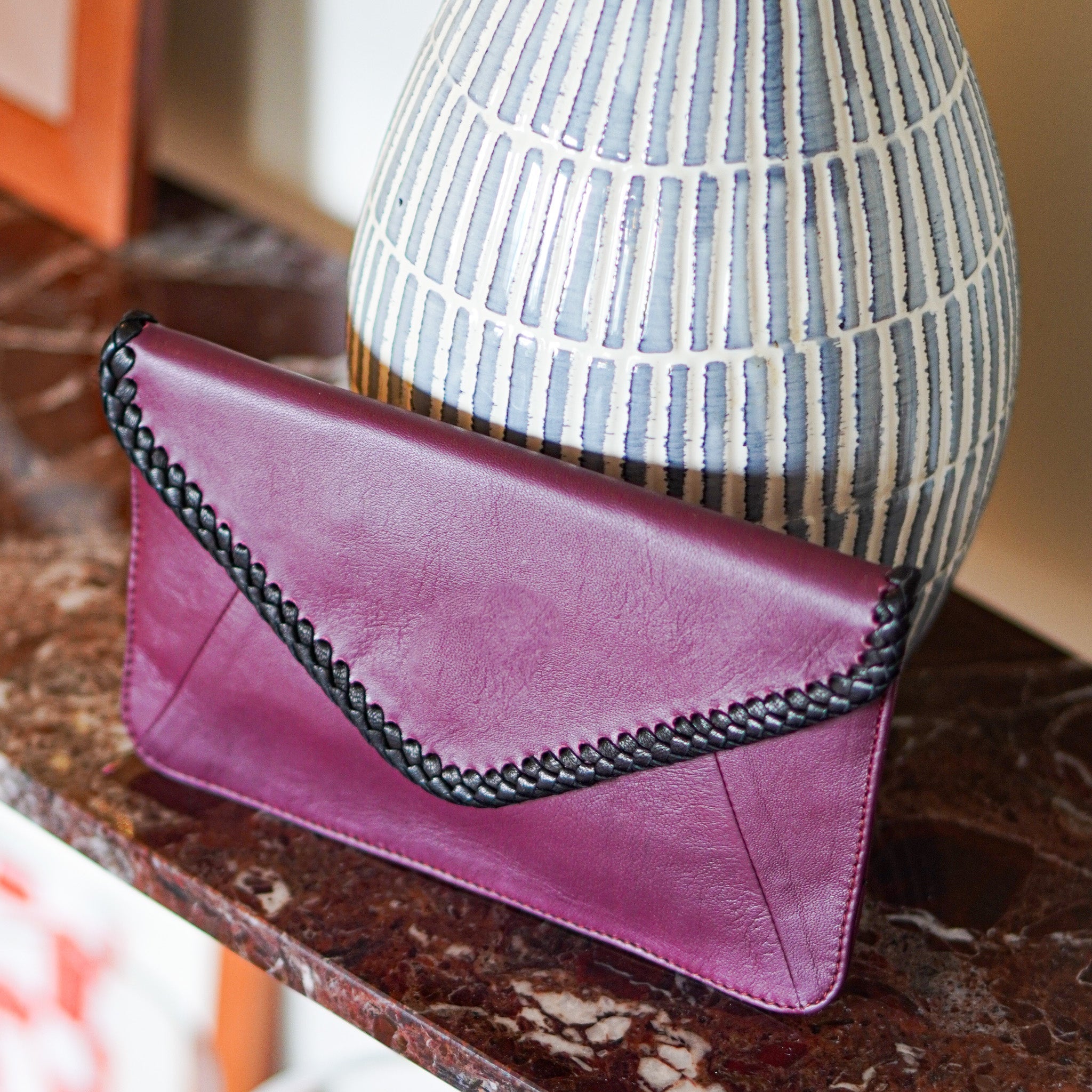 Découvrez la pochette Renée, en cuir bordeaux, élégante et pratique, pour garder vos essentiels à portée de main avec style.