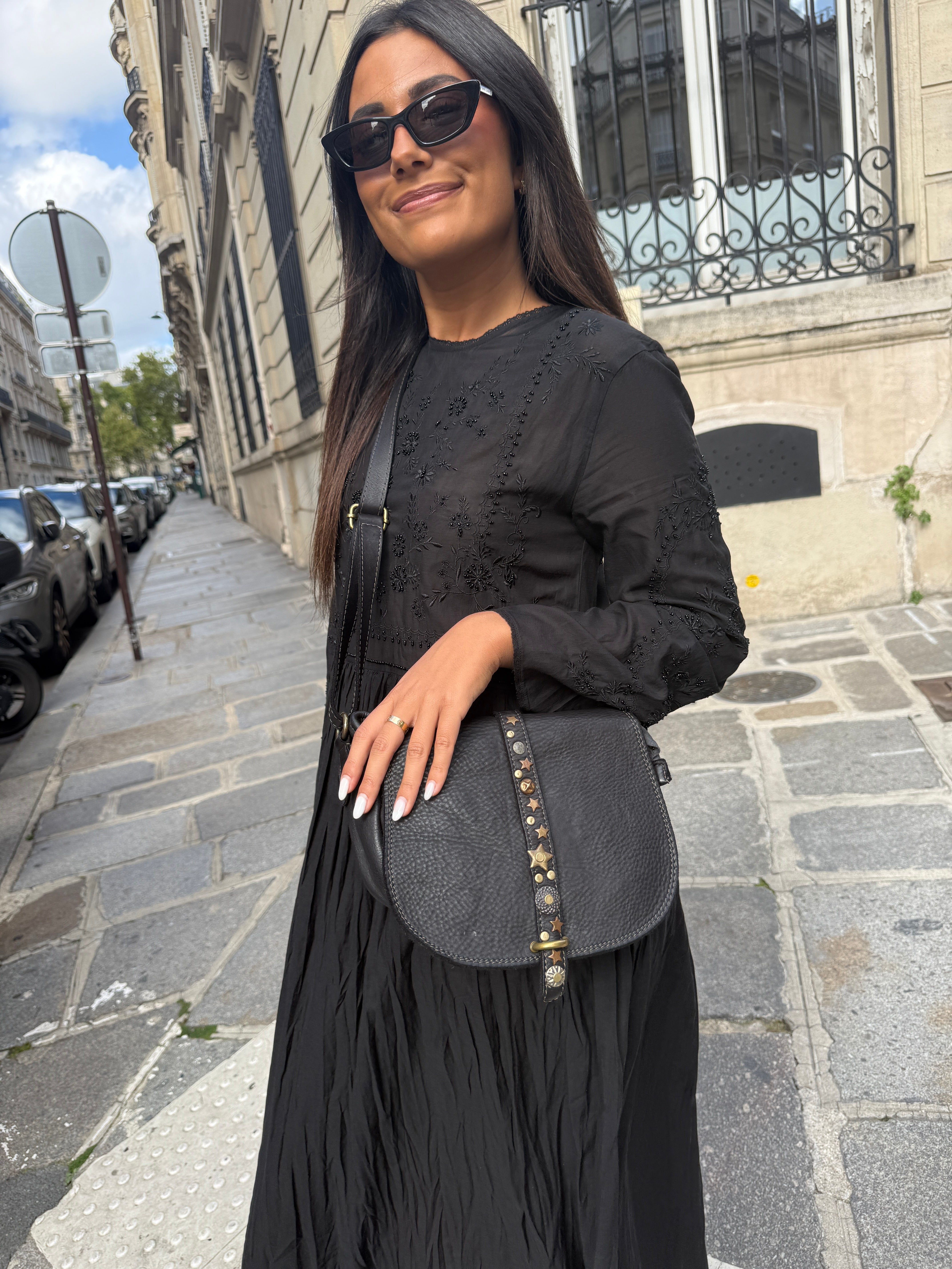 Le Roma c'est la besace idéale  en cuir véritable vintage un peu patiné au style intemporel et bohème chic. Confectionné en Italie dans un cuir noir souple et résistant, elle allie praticité et élégance pour accompagner vos journées actives comme vos soirées.