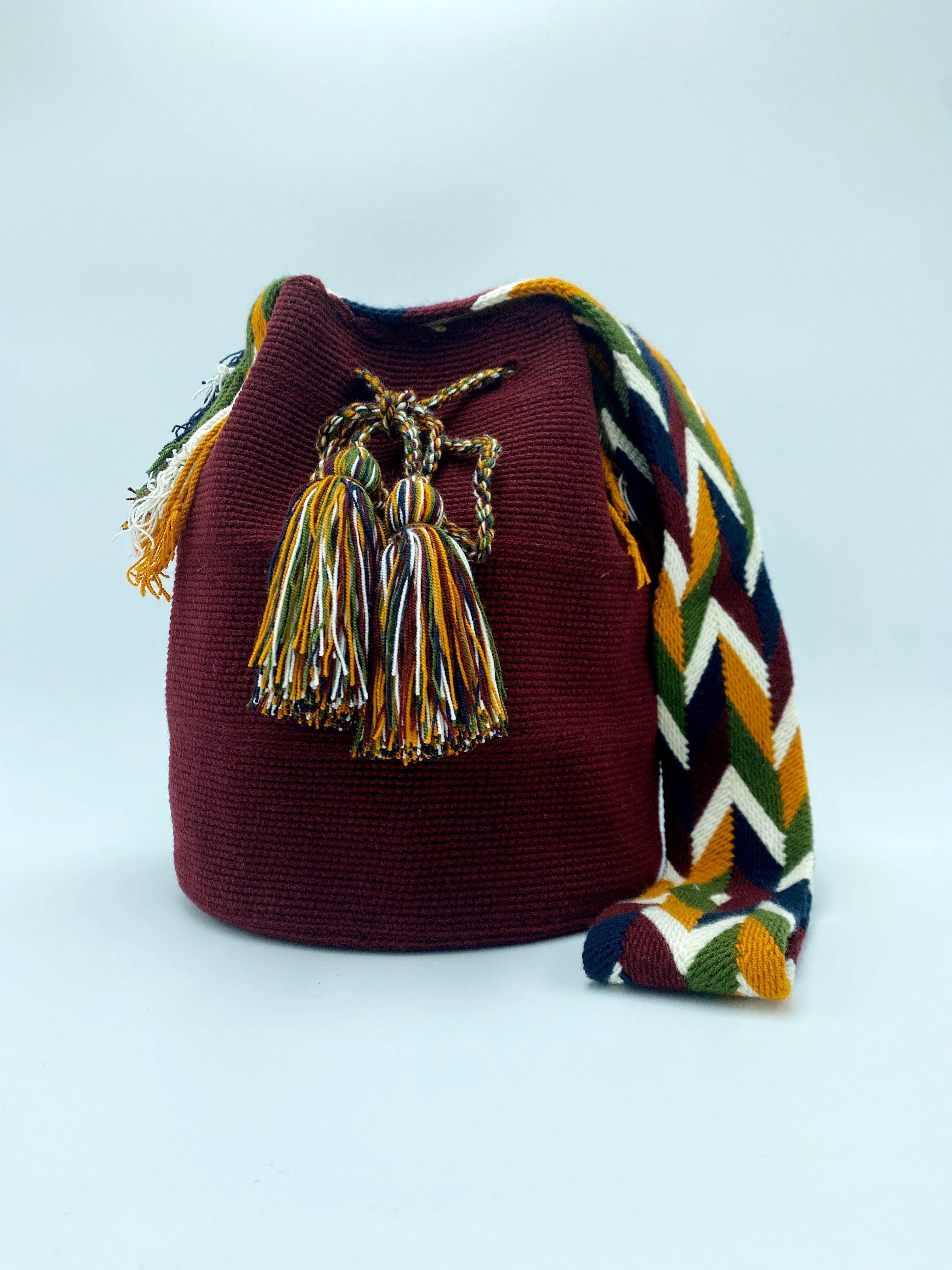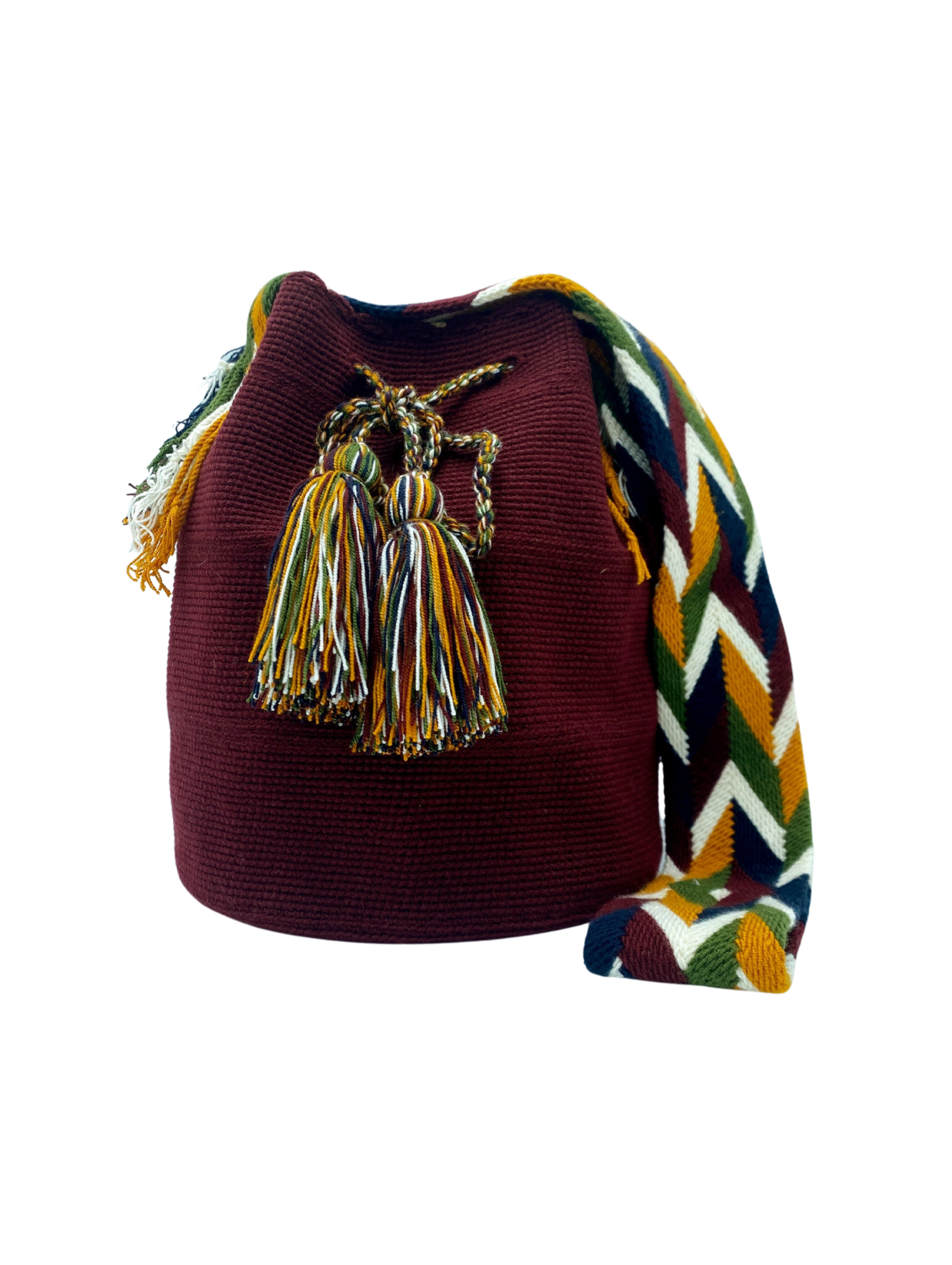 Caractéristique unique : Chaque sac Emma Bordeaux est tissé à la main par une artisane Wayúu, perpétuant un savoir-faire ancestral. Ce travail minutieux rend chaque sac unique, garantissant une qualité et une authenticité incomparables.