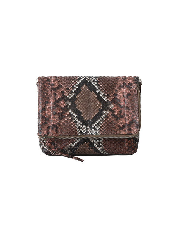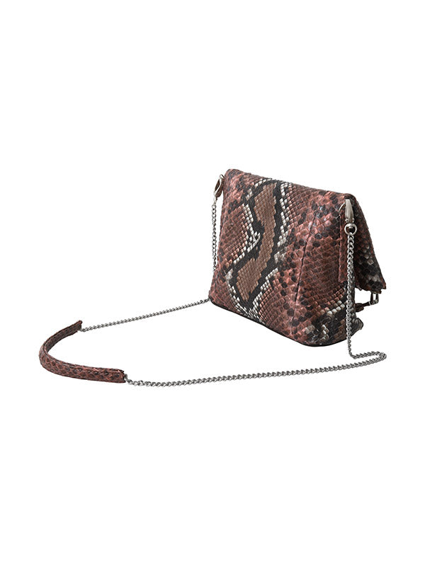 Design : Sac en python souple, format pochette avec une anse en chaîne amovible, pour une polyvalence totale. À la fois sac de jour et pochette de nuit, selon vos envies.