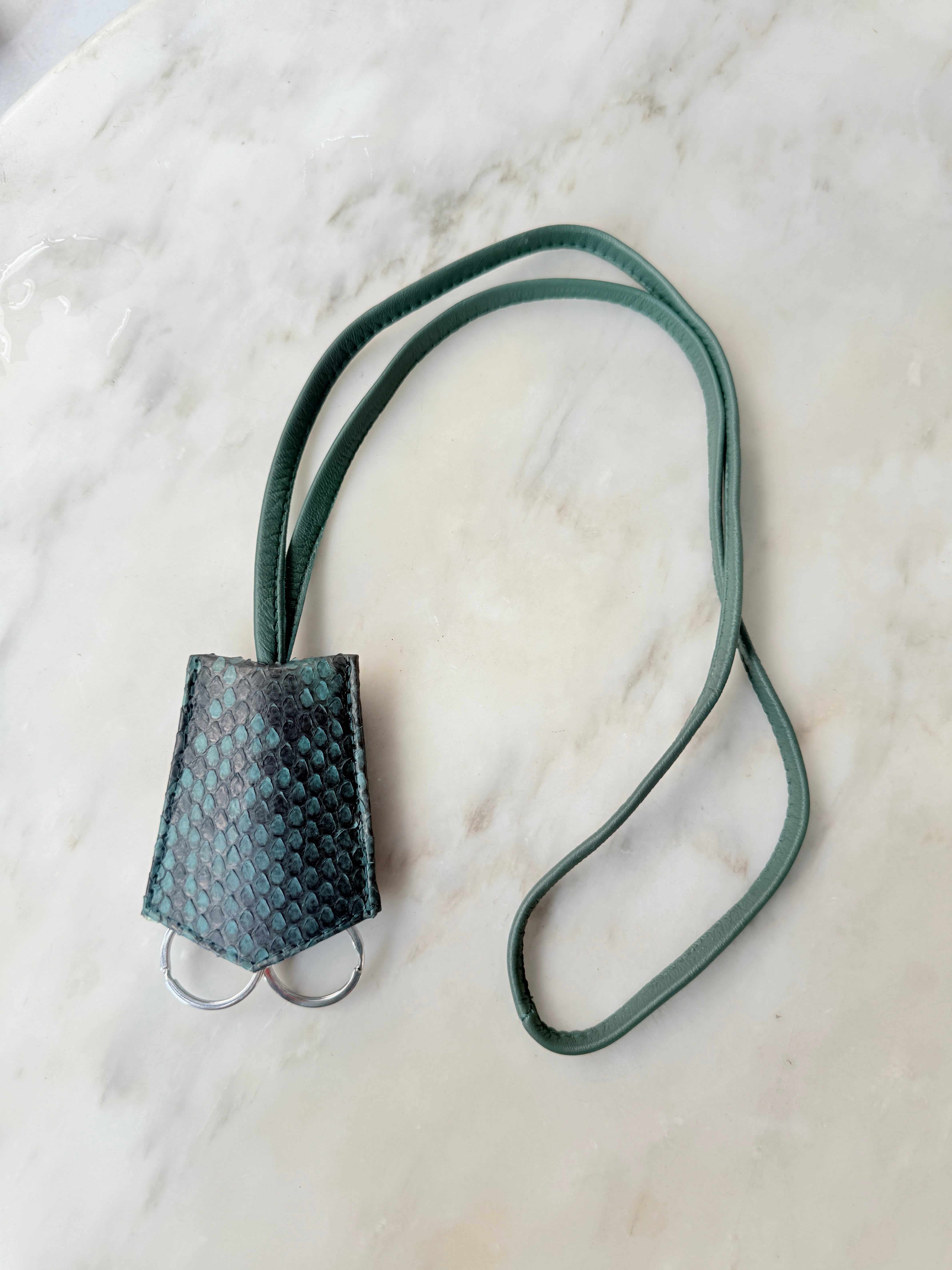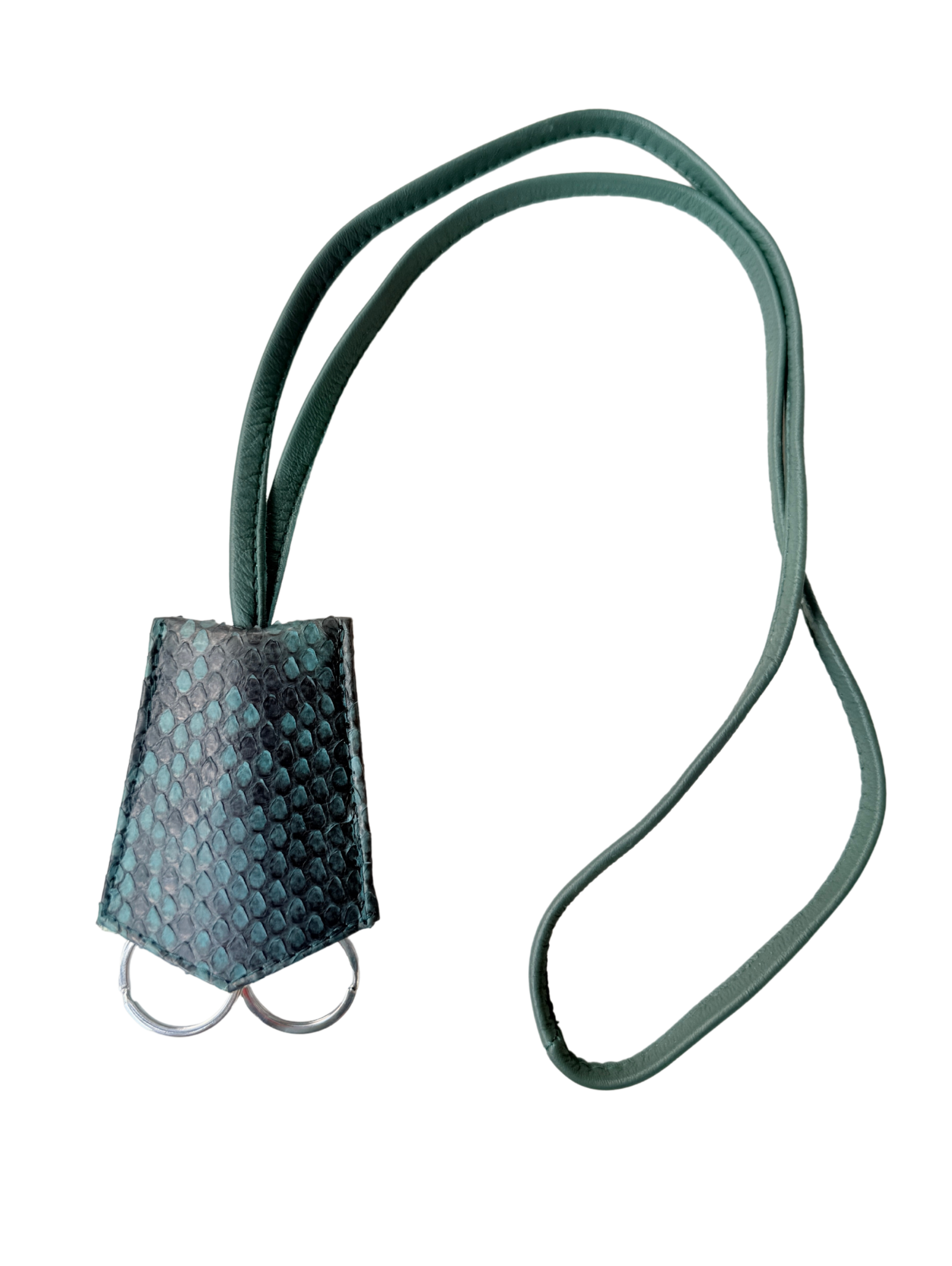 Design : Le porte-clés Sésame est un accessoire à la fois pratique et stylé. Confectionné en cuir de python véritable, il se distingue par son élégance et sa texture unique. Vous pouvez le porter autour du cou pour garder vos mains libres ou l'attacher à votre sac pour retrouver vos clés sans effort. Deux anneaux robustes assurent la sécurité et l'accessibilité de vos clés.