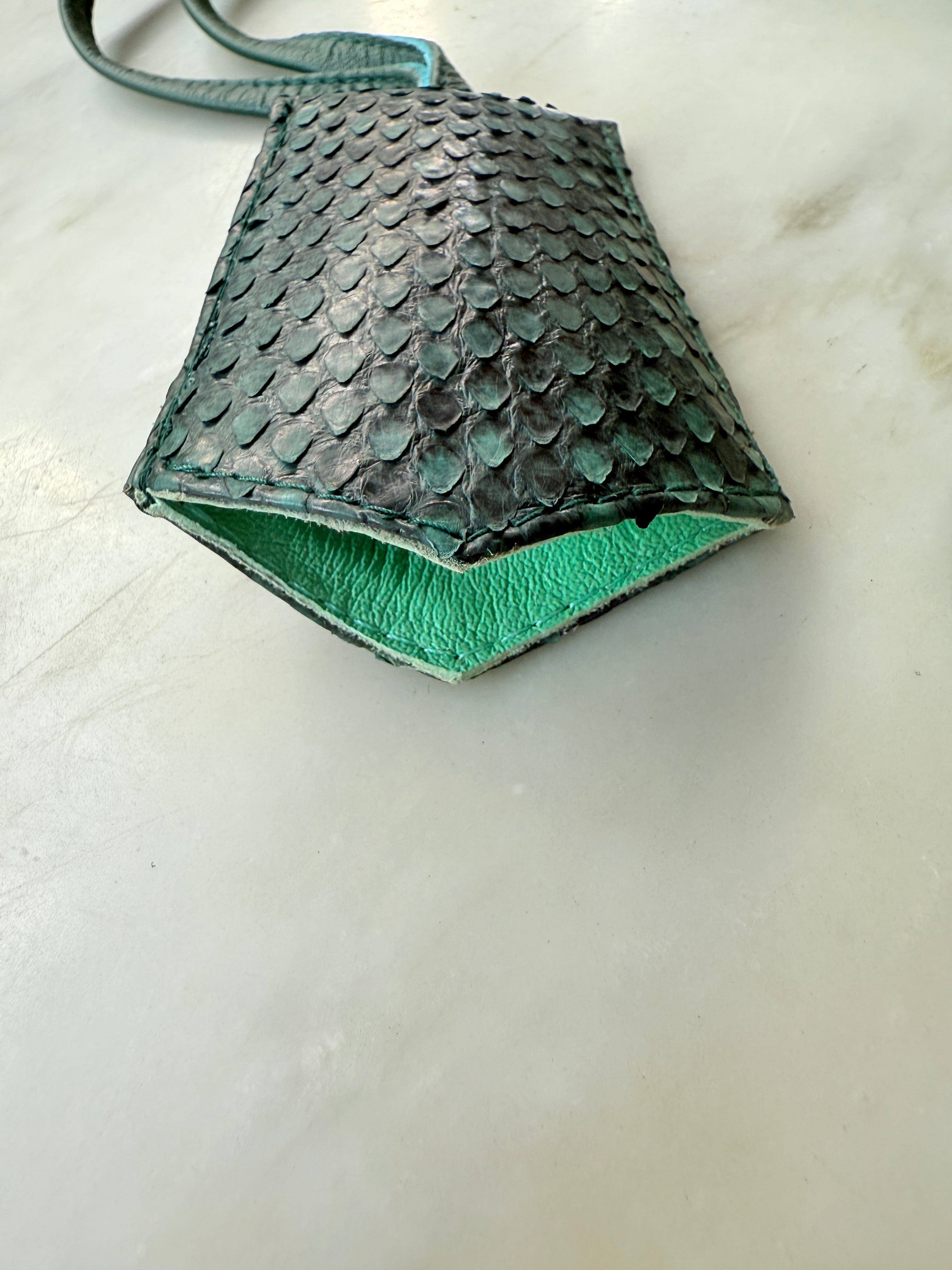 Couleur : Le vert Tosca, une teinte vibrante et raffinée, se marie parfaitement à l’aspect texturé du cuir de python, apportant une touche de luxe à votre quotidien.