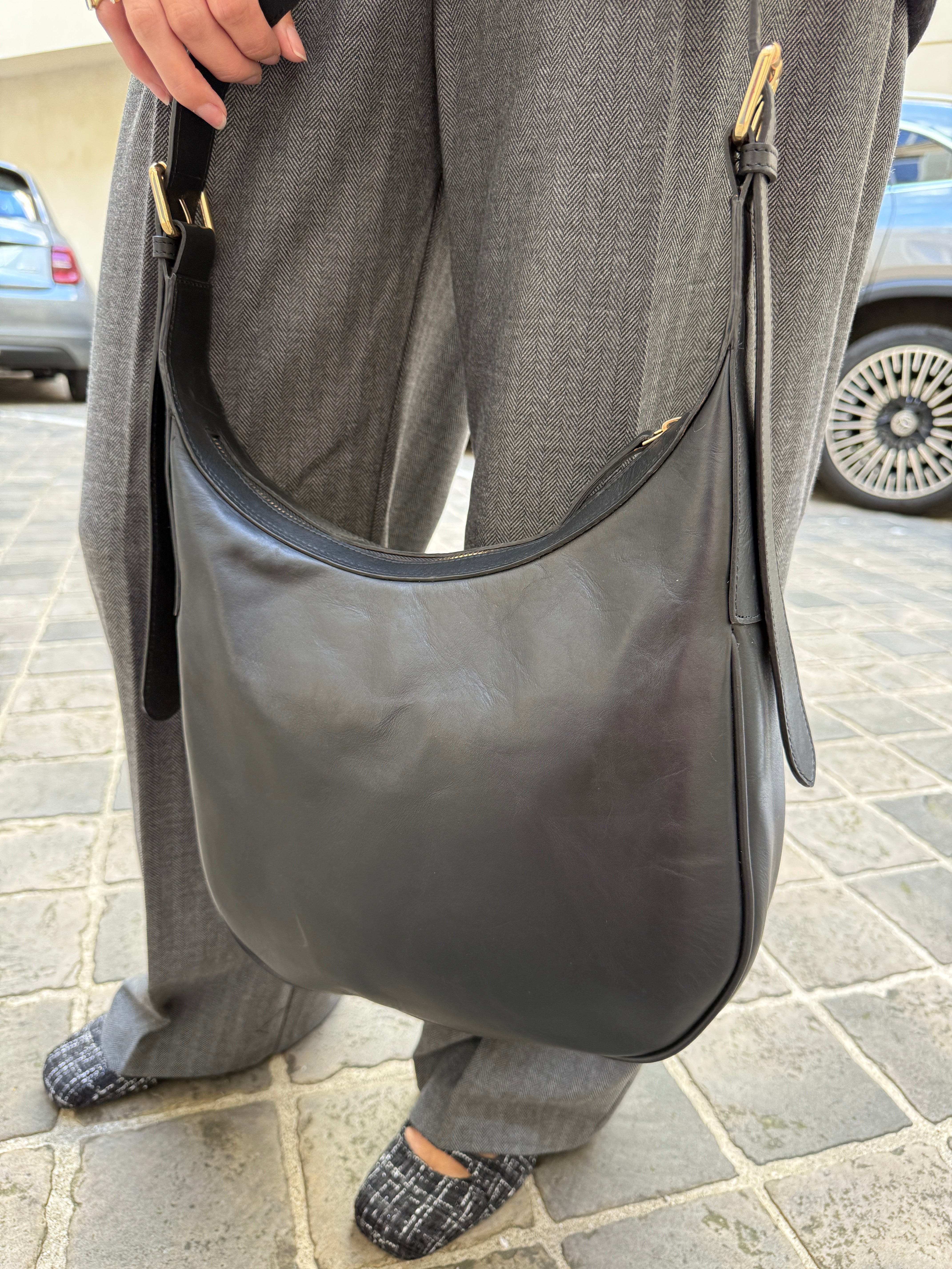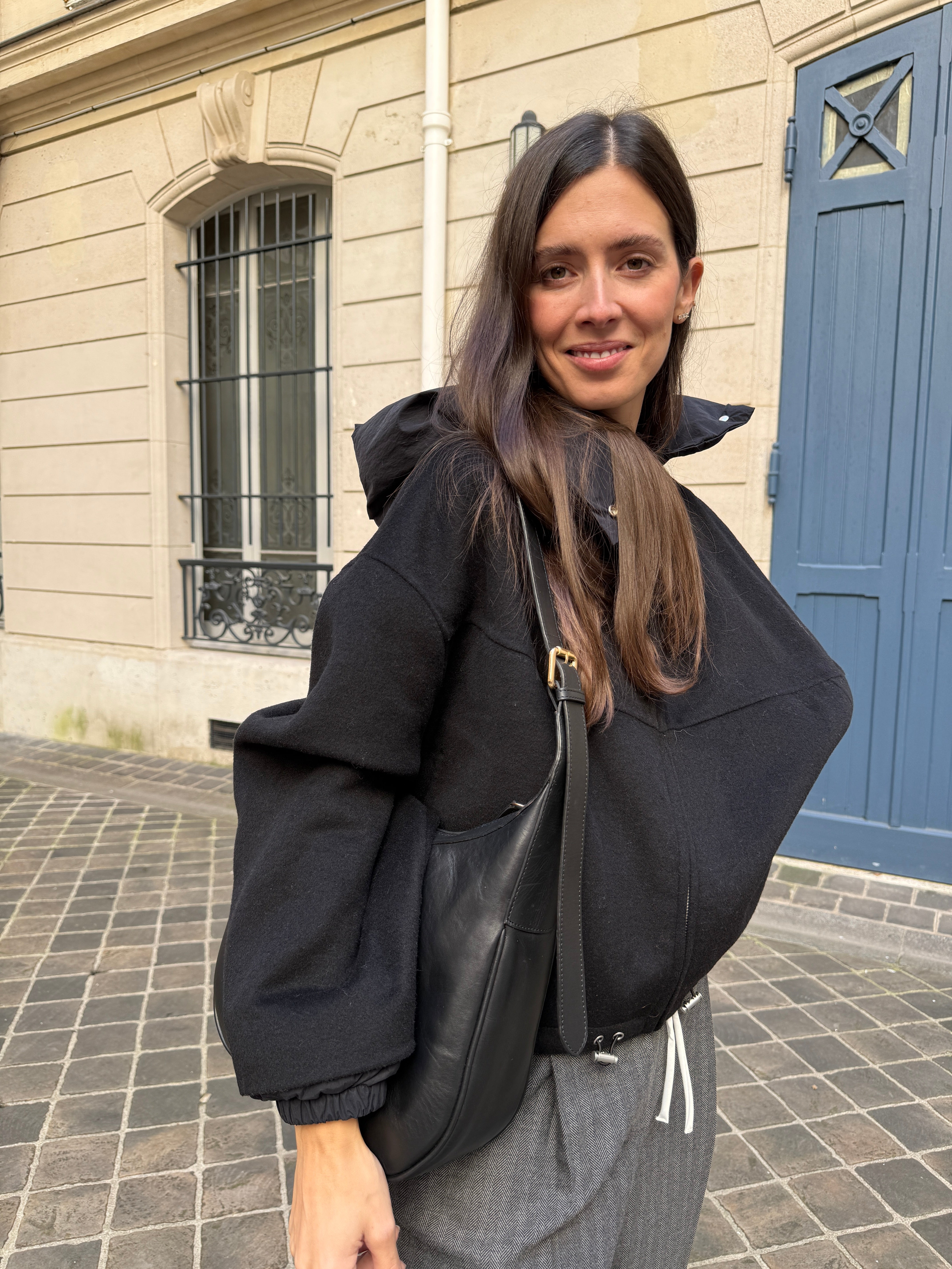 Découvrez le sac Françoise, un modèle en cuir naturel noir alliant élégance et raffinement, pour un style intemporel et sophistiqué.