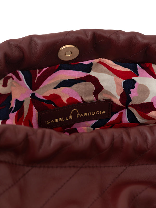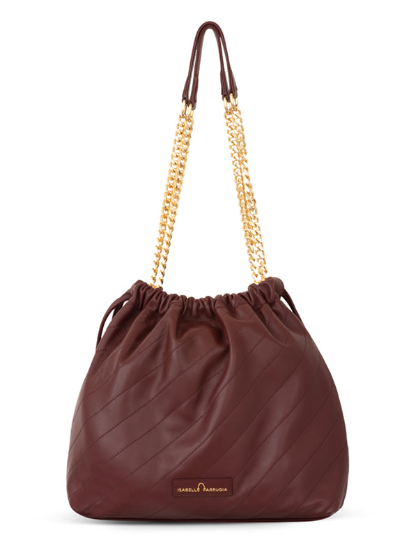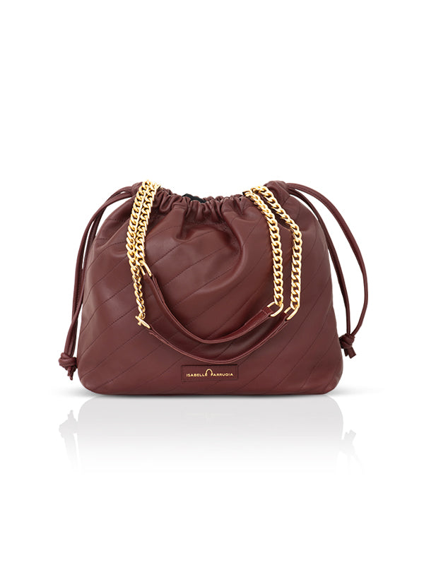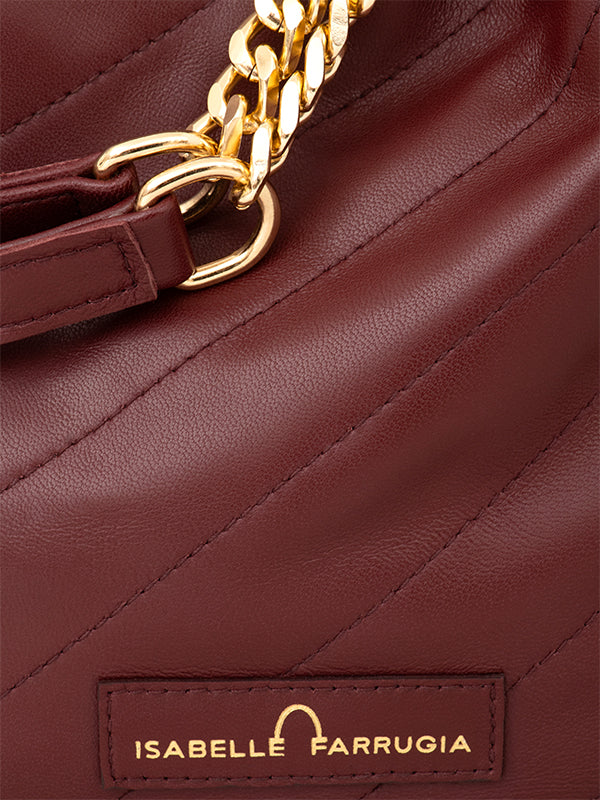 Couleur : Bordeaux, une teinte intemporelle qui se marie facilement avec tous les styles, à toutes les saisons, et une chaîne or rose pour une touche chic et moderne.
