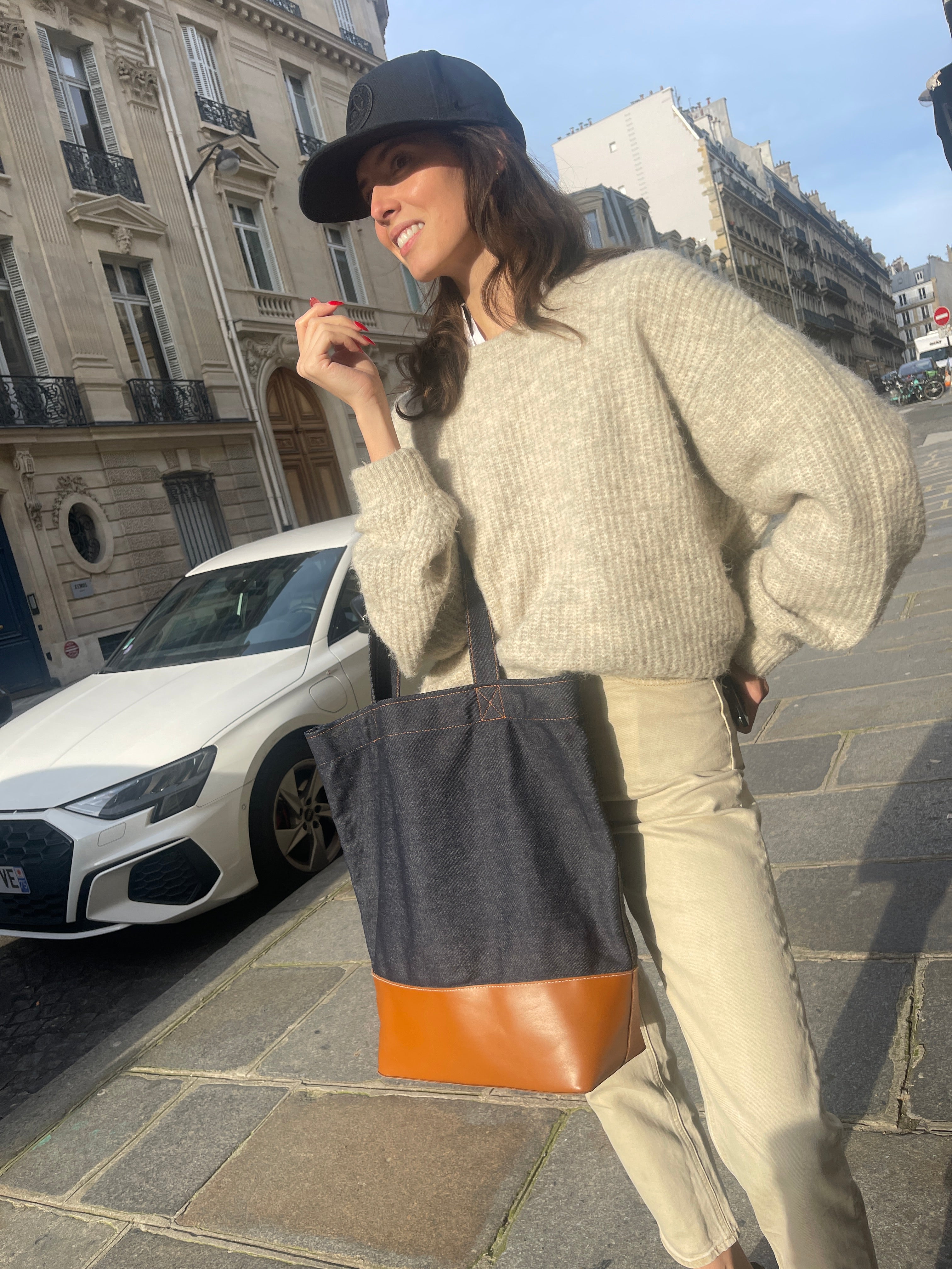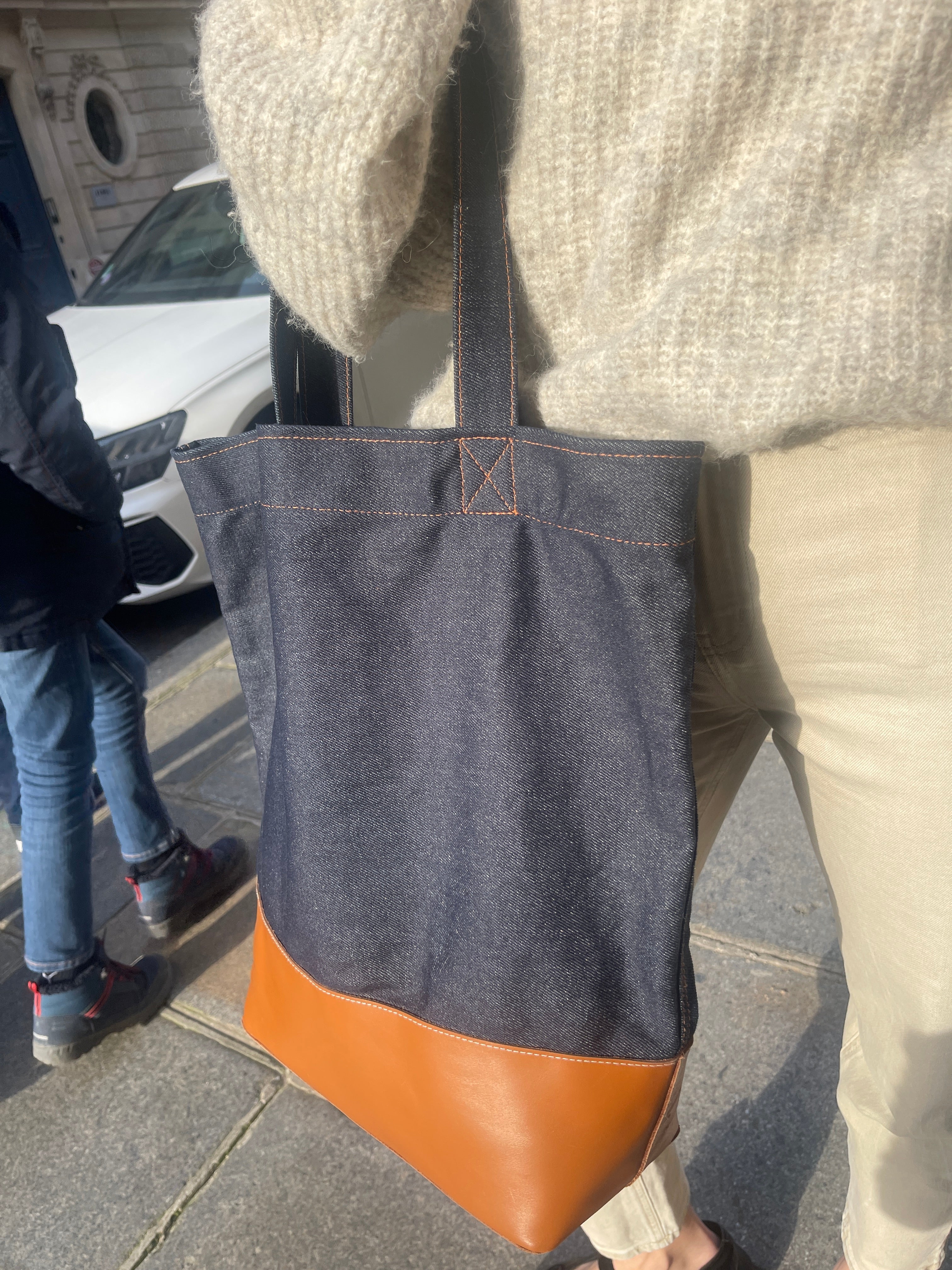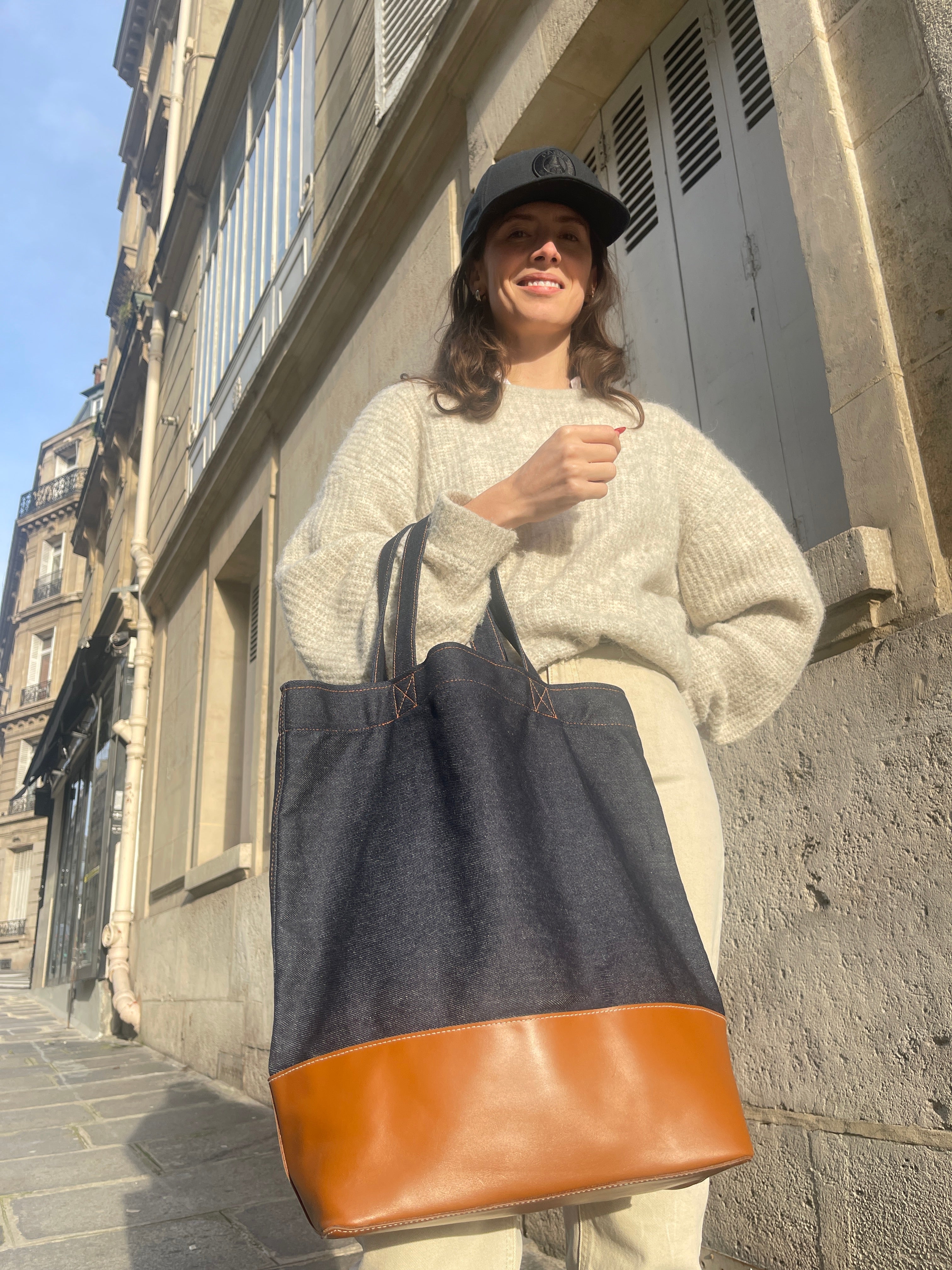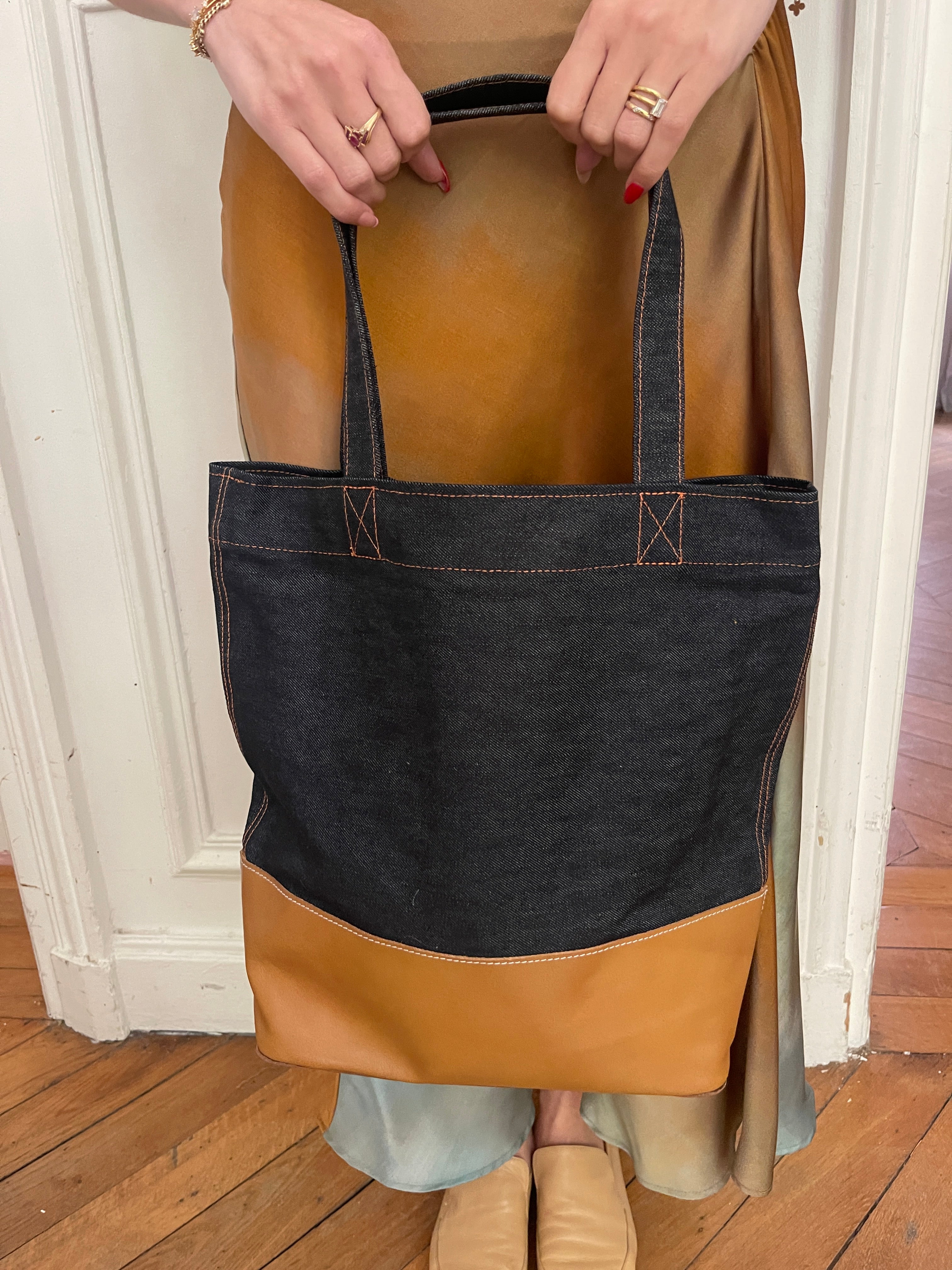 Découvrez le totebag Anne, un mélange de denim brut et de cuir gold, alliant élégance et fonctionnalité pour un style chic et pratique.
