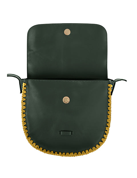 Découvrez le sac Elodie kaki en cuir et crochet, léger et moderne, pour ajouter une touche de style à toutes vos tenues.