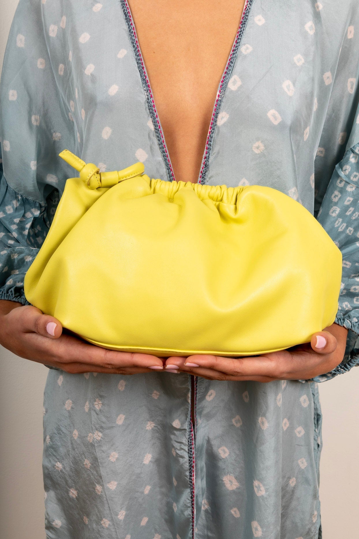 Découvrez la Pochette Sac Denise en cuir tout souple jaune, un accessoire moderne et incontournable.